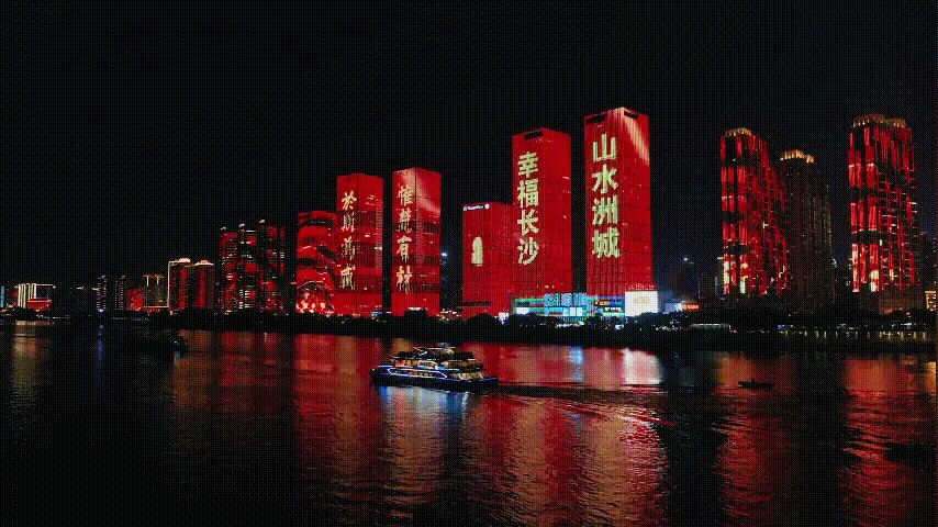 用灯光秀讲述长沙故事、再现红色经典、传承红色基因、传递主流价值观,已成“精美长沙”的一张崭新名片,长沙就是这么红!