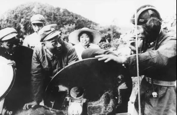1964年,轻型坦克在桂林试车时,许光达与试车队的科研人员交谈。