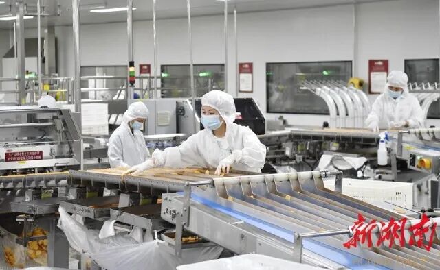 (8月2日,浏阳经开区(高新区)盐津铺子薯片智能制造生产车间,工人正在进行生产。江毅 摄)