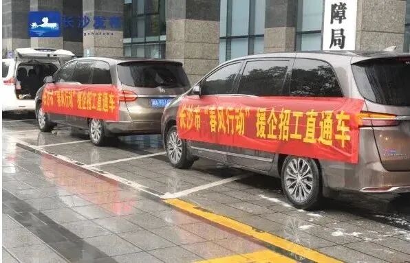 2月7日,长沙市援企招工小分队在长沙市人社局集结出发。