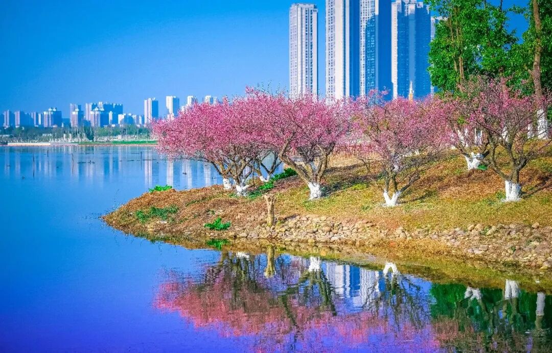 "茶花一树早桃红,百朵彤云啸傲中。"