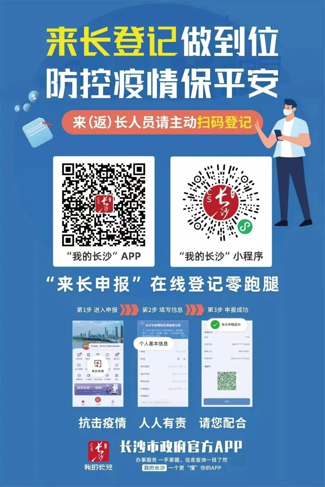 近14天内有外省旅居史、有高中风险区所在的市(州、盟)、封控管控区旅居史的入(返)长人员,与感染者轨迹有交集的人员,健康码为红黄码的人员,行程卡带“*”号的人员,通过“我的长沙”APP或“我的长沙”小程序报备,也可选择通过电话、委托亲人朋友同事等方式向目的地所在社区(村)、工作单位或所住酒店报备,按要求配合做好各项防控工作;对瞒报、谎报个人行程和健康状况的,将可能依法追究法律责任。来返长沙人员最新疫情防控政策会在“国务院客户端”(小程序)更新公布,点击下方“国务院客户端”链接,在“各地防疫政策”栏目查询长沙即可。