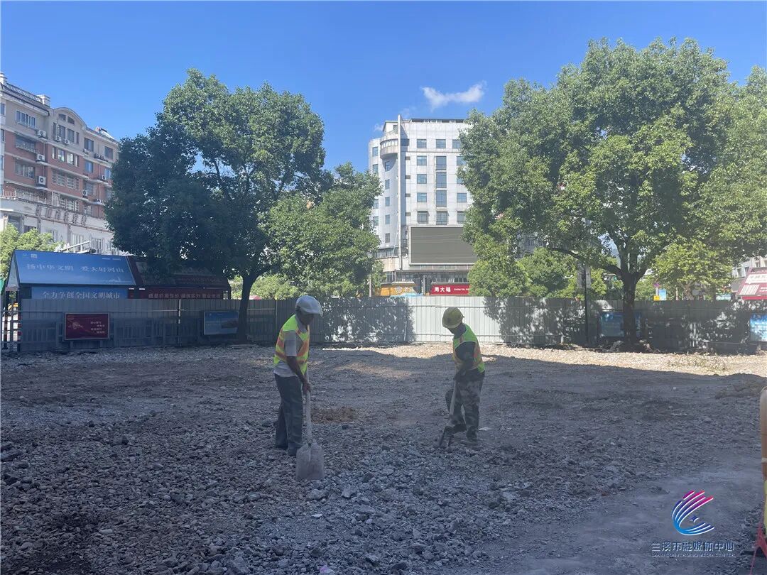 今天上午,记者来到兰江大桥和人民南路交叉口,发现该区域已铲平,两名工人正拿着铁锹和锄头在现场清理石堆和杂物,为后续的施工做准备。待建成后,这里将建造出一座可供市民休闲娱乐的微公园,实现大家“出门即公园”的美好愿望。