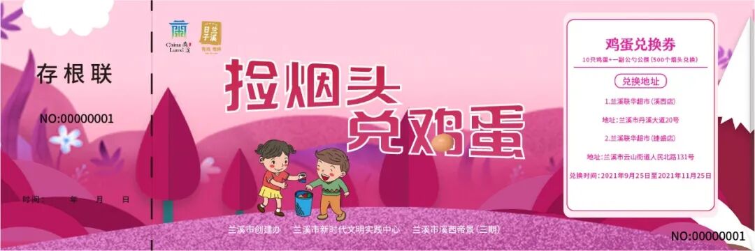 (烟头兑换鸡蛋券)2021年9月25日—2021年11月25日每周六上午8:30—11:30