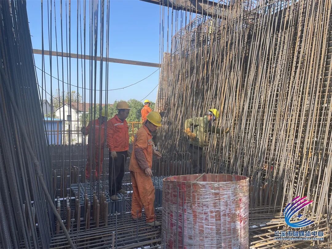 今天上午,记者在兰溪灵洞乡的金建高铁跨杭金衢特大桥项目现场看到,工人们正在212号桥墩上进行连续梁0号块的钢筋绑扎作业。