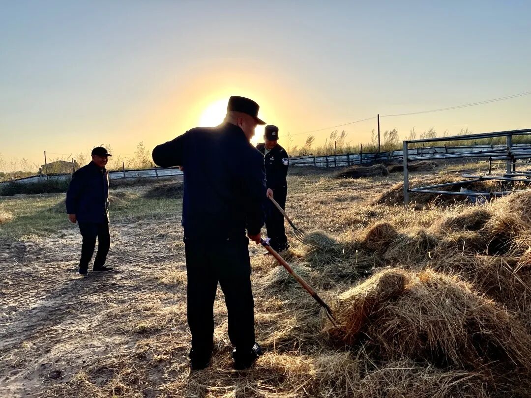翻滚的乌云从天边席卷而来,近日,73岁的达西大爷抬头一望,心情顿时紧张起来。坏了!达西大爷心想:暴雨将至,刚买的饲草料还没有摆放,被雨浇了就无法再喂养牲口了,可家中劳动力都已外出,咋办?达西大爷的困难很快被正在巡逻的珠日河派出所民警得知。民警立即联系驻村工作队队员,三三两两忙碌起来。你把那边桩子打了,我负责将这边料草拿过去。经过五个多小时的劳作,大家齐心协力帮着将料草归拢到仓库里。秋收期间,科左中旗公安局18个派出所发挥人熟、地熟、情况熟的优势,积极开展矛盾纠纷排查化解、助力粮食收割。