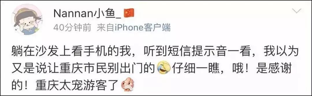 还有些重庆网友开玩笑说,自己之前“斗胆”出门,被挤在洪崖洞上,没有收到感谢信,觉得很紧张,“难道我没有听话悄咪咪溜出去玩被发现了?”