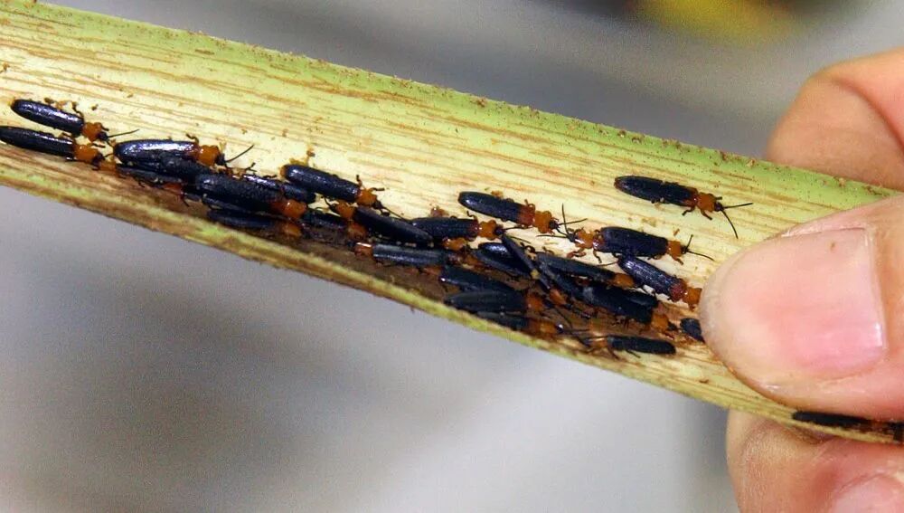 椰心叶甲是一种具有重大危险性的外来有害生物,原产于印度尼西亚与巴布亚新几内亚,现广泛分布于太平洋群岛及东南亚。椰心叶甲具有繁殖快、破坏性强和防治难度大的特点。