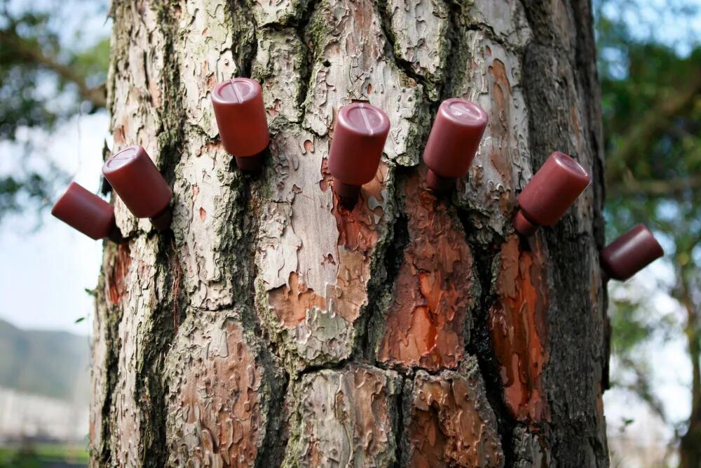 古松树在接受松材线虫病免疫注射。
