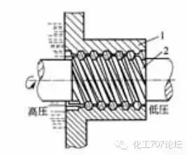 螺旋密封也是动力密封的一种形式,它是在旋转的轴上或者在轴的包容套上加工出螺旋槽,轴和套之间充有密封介质。轴的旋转使螺旋槽产生类似于泵的输送作用,从而阻止密封液的泄漏。其密封能力的大小与螺旋角度、螺距、齿宽、齿高、齿的作用长度以及轴与套之间的间隙大小有关。由于密封之间不发生磨擦,因而寿命长,但由于结构空间的限制,其螺旋长度一般较短,因而其密封能力也受到局限。在泵降速使用时,其密封效果则会大打折扣。干气密封即“干运转气体密封”是将开槽密封技术用于气体密封的一种新型轴端密封,属于非接触密封。干气密封原理:当端面外侧开设有流体动压槽(2.5~10µm)的动环旋转时,流体动压槽把外径侧(称之为上游侧)的高压隔离气体泵入密封端面之间,由外径至槽径处气膜压力逐渐增加,而自槽径至内径处气膜压力逐渐下降。因端面膜压增加使所形成的开启力大于作用在密封环上的闭合力,在摩擦副之间形成很薄的一层气膜(1~3µm)从而使密封工作在非接触状态下。所形成的气膜完全阻塞了相对低压的密封介质泄漏通道,实现了密封介质的零泄漏或零逸出。化工泵经常输送的是具有腐蚀性,或是有毒挥发的介质,因此其密封性能是衡量化工泵好与坏的标准之一。在选择化工泵时,应参考如下标准。对于静密封,通常只采用密封圈和密封垫两种密封形式,而在密封圈中又以O型圈的应用性最广泛;对于动密封,很少采用填料密封,其主要是以机械密封为主,而机械密封之中又分单端面和双端面、平衡型和非平衡型。其中平衡型较适应于高压介质的密封,其通常指压力大于1.0MPA。而双端面机封主要则是用于高温、易结晶、有粘度、含颗粒以及有毒挥发的介质,双端面机封应向密封腔中注入隔离液,其压力一般高于介质压力0.07~0.1MPA。化工泵静密封的材料通常情况下使用氟橡胶材料,在特殊情况会采用聚四氟材料。