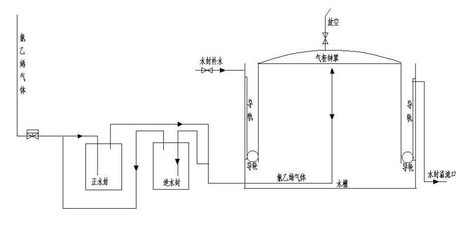 2.1目前行业所使用的湿式氯乙烯气柜结构及工作原理。