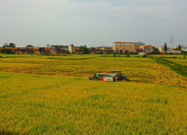 △湖北省应城市稻田收割忙