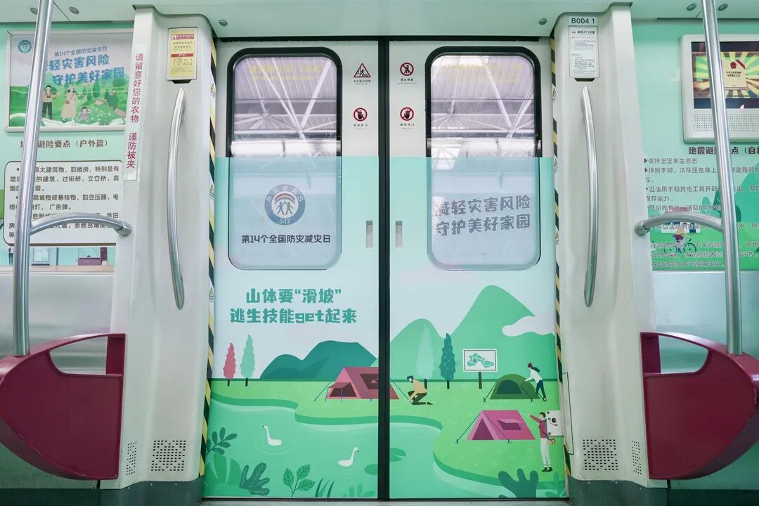 这些内容丰富的防灾减灾及安全知识,走进列车都可一次性get!伴随清新明快的基底色调,乘客可以在列车看板、车窗、车门和PIS屏等位置,看到台风、内涝、地震、泥石流四大华南地区常见灾种主题相关漫画、小tips、主题标语、海报及视频短片。