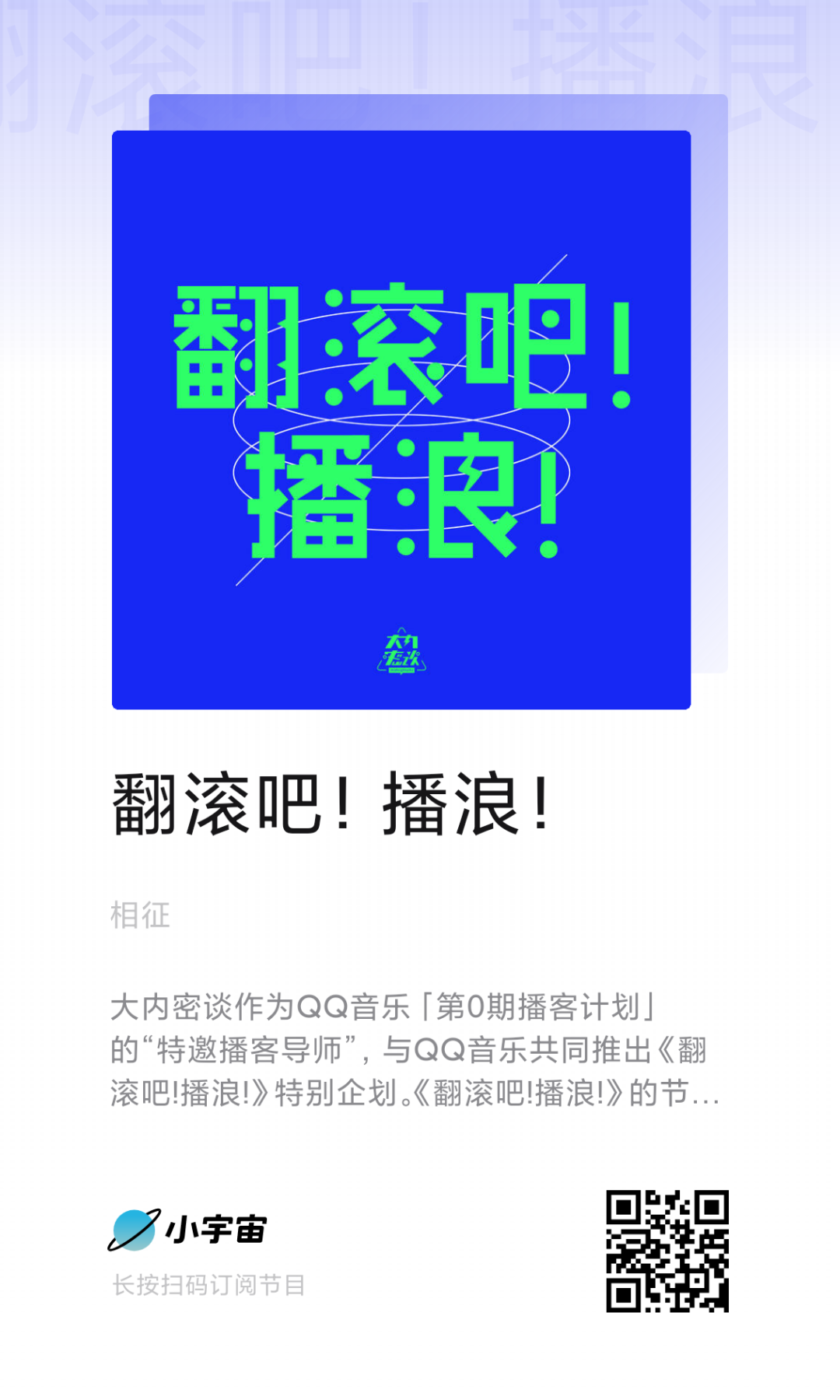 特别提醒:小宇宙上的听众朋友们可以通过点击大内密谈节目页面中【翻滚吧!播浪!】banner按钮,或直接搜索【翻滚吧!播浪!】找到系列节目页面,进行收听。