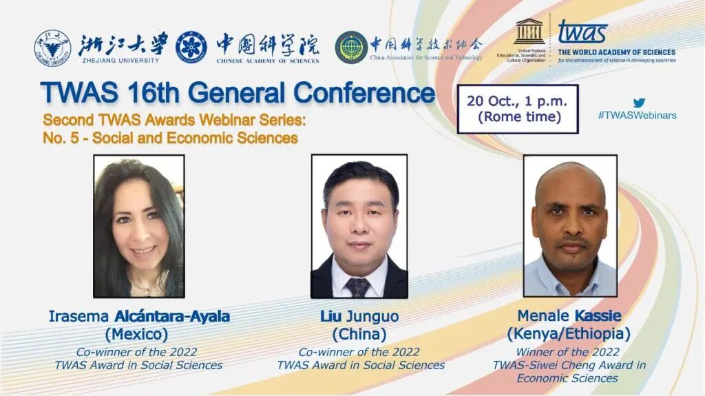 近日,2022年世界科学院(TWAS)将社会科学奖授予华北水利水电大学学术副校长刘俊国教授和墨西哥科学家伊拉斯马·阿尔坎塔拉-阿亚拉,以表彰其在水资源、气候变化缓解和环境管理等方面所作出的重要贡献。