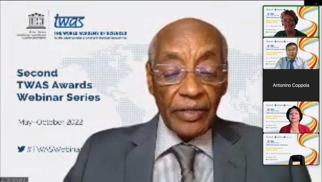 2022年世界科学院社会科学奖获奖者刘俊国(中) 、伊拉斯马·阿尔坎塔拉-阿亚拉(左)与成思危经济学奖获奖者梅纳莱·卡西(右)10月20日,刘俊国教授应邀参加世界科学院奖网络研讨会系列(第5场研讨会:社会和经济科学),并以“中国虚拟水贸易:模式、驱动力与解决方案”为题作获奖者主旨报告。本次网络研讨会由世界著名教育学家,入选加拿大皇家学会院士、欧洲科学院终身院士、世界科学院院士加拿大蒙特利尔麦吉尔大学教授拉特娜·戈什(Ratna Ghosh)主持。世界科学院院长穆罕默德·哈桑(Mohamed H.A. Hassan)院士发表欢迎致辞并表示,世界科学院旨在促进发展中国家的科学发展,世界科学院及其合作伙伴授予的荣誉是为表彰和激励发展中国家的杰出科学家,同时为他们赢得全球认可。穆罕默德·哈桑是世界知名学者,在应用数学、环境建模、地球物理学等领域做出卓越贡献,入选世界科学院、比利时、南非、巴基斯坦等近十个科学院院士。当前华北水利水电大学正处于“双一流”创建的关键阶段,刘俊国教授获评2022年“世界科学院奖”是学校践行省委“十大战略”的生动实践,对提升学校水利工程学科国际影响力具有十分重要的意义,也为党的二十大胜利召开献出了一份华水贺礼。