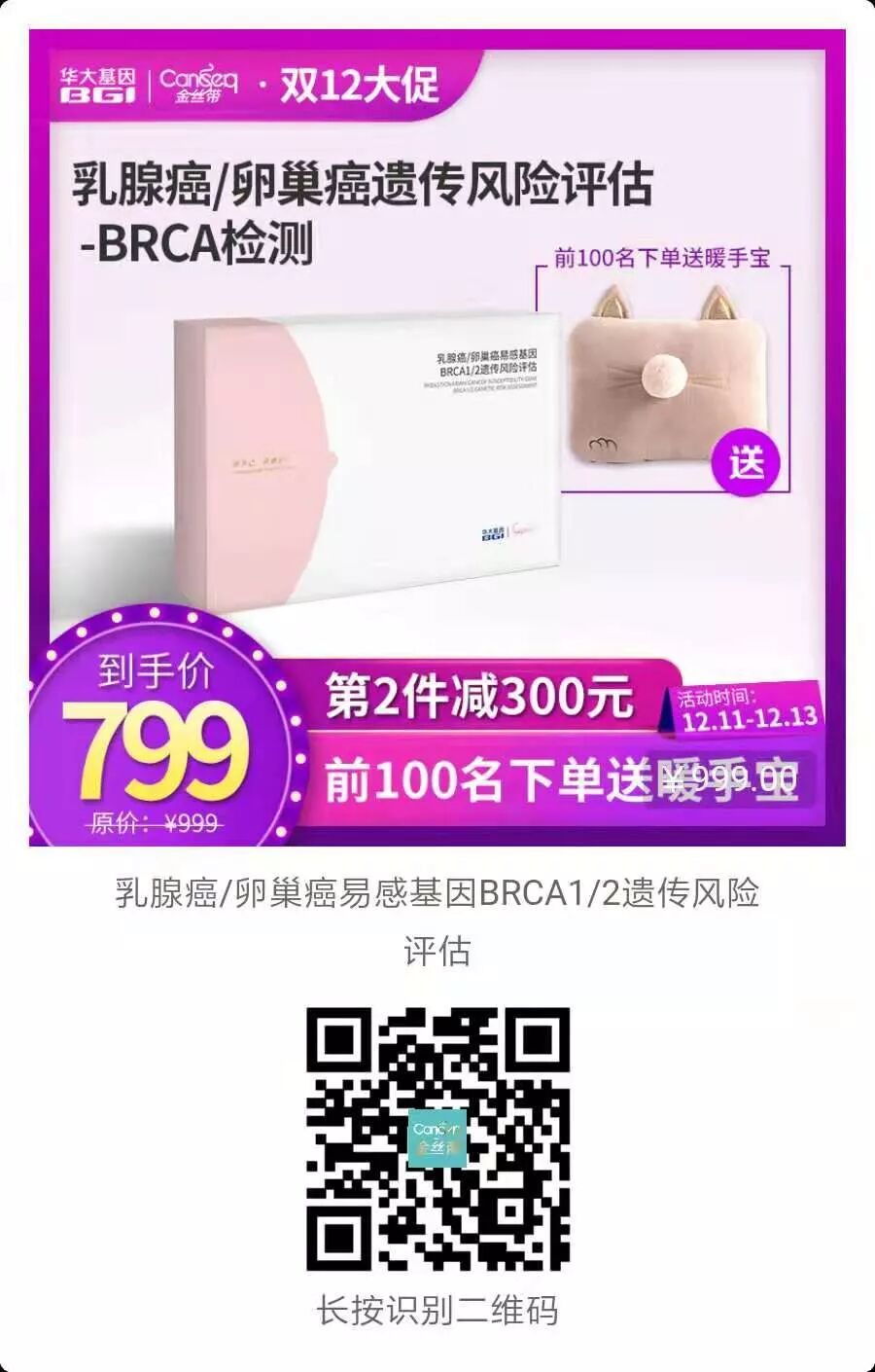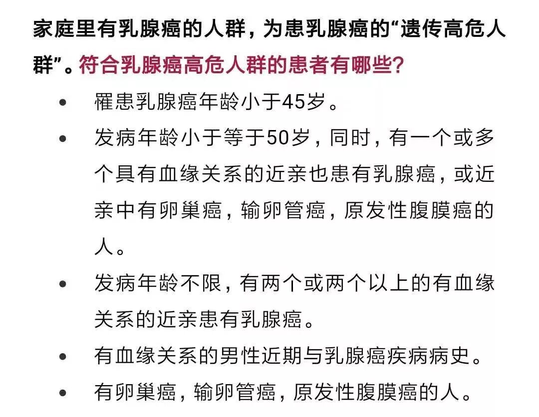 这些高危人群,我们建议进行基因检测:BRCA1,BRCA2。如果以上高危人群进行基因检测后,BRCA1基因检测-阳性,她终身患乳腺癌的风险为:55%-70%,如果BRCA2的基因检测突变为-阳性她终身患乳腺癌的风险为:45%-70%。