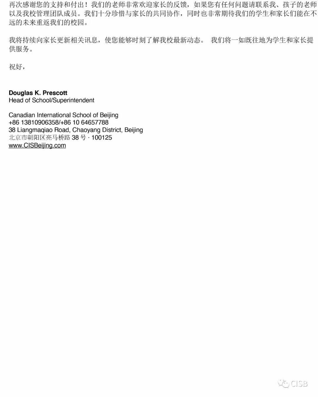 请您查看以下来自学校校长Douglas K. Prescott的信件。该信息已于2月19日通过邮件发送到您的邮箱。