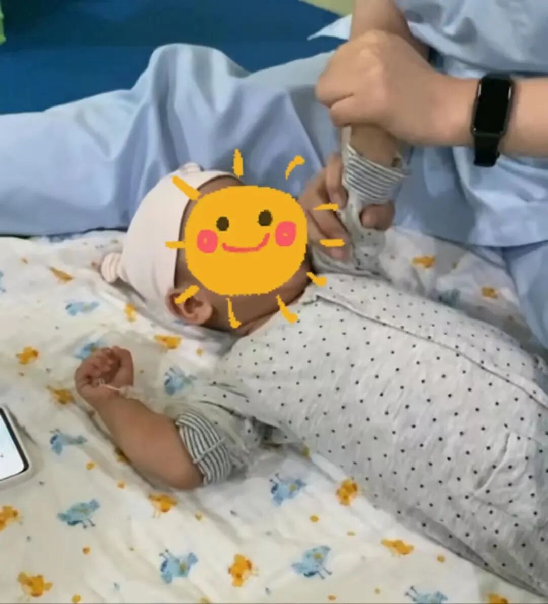 淇淇黑瘦,只有4斤多,“真的看着好丑啊”,但是她和丈夫掀起襁褓一角看淇淇的小手小脚,一会又放下,一会又掀起,挪不开眼。