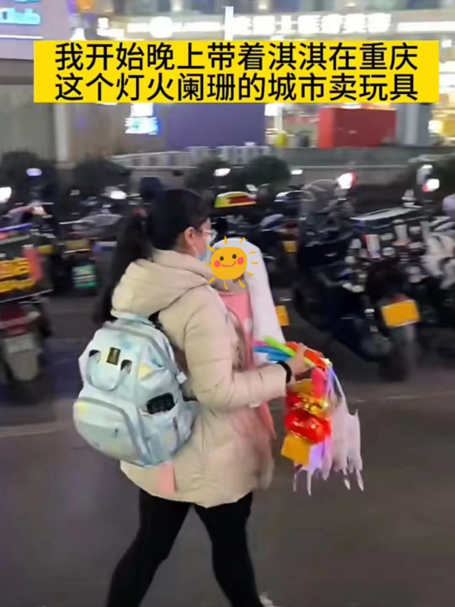 今年年初,淇淇阳康没多久,她和几个熟识的宝妈一起在重庆街头摆摊卖灯笼玩具,她全程用毯子裹着淇淇,背着淇淇,但是还没半个月,淇淇又得了肺炎。住院治疗花了8000多元钱,而她摆摊才赚了2000多”。
