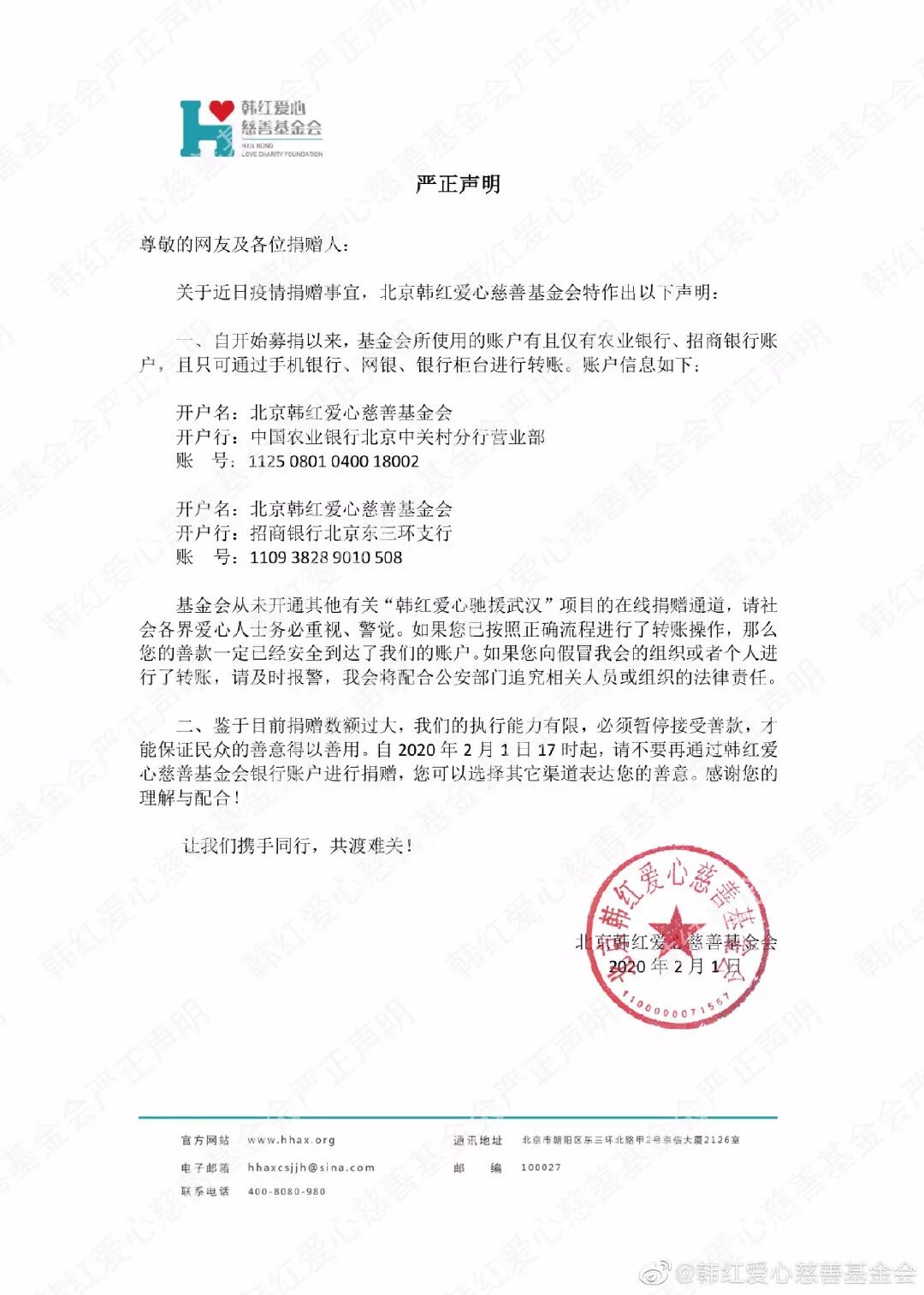 当然,韩红也许能处理好和湖北红十字会相同数量的资源的流转调配,但是现在,还是谨慎点赞吧。话音刚落,韩红方面传来消息,因为数额太大无法处理,所以暂停接受善款。