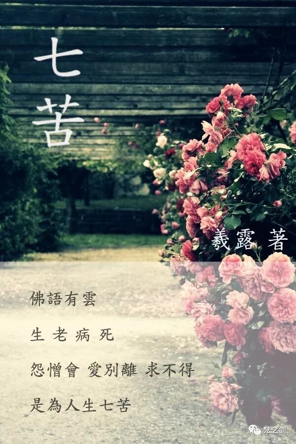 他概括说,人生有“七苦”。所谓“七苦”,生、老、病、死为“四苦”,老、病、死这三样,自然是苦的。人老了,弓腰驼背,皓首苍颜苦;不幸生病了,病骨支离,缠绵病榻苦;最倒霉的,一命呜呼,命赴黄泉,真是苦也。