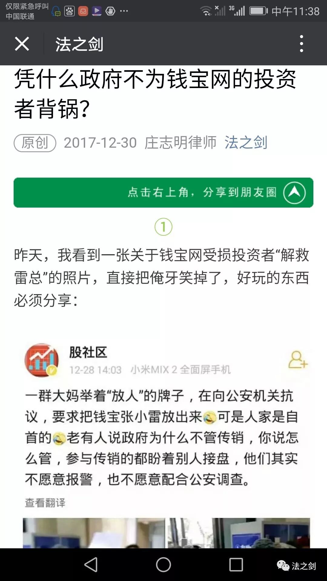 直到年初一天,我发了一篇关于钱宝网的文章,他来了,怒气冲冲,对我强烈抨击。这时我才了解到,他也参与了钱宝网的投资。此时的我,已成为诸多宝粉们的眼中钉了,他也不例外,对我说了一些批评的话后,取关了我。我的原则是宁可三日不吃肉,不可一日不增粉,现在少了一个粉丝,比割我的肉还疼呢!