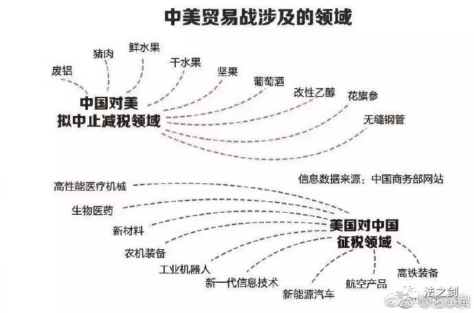 关于这一轮中美贸易战涉及的领域,我们不妨看看下图: