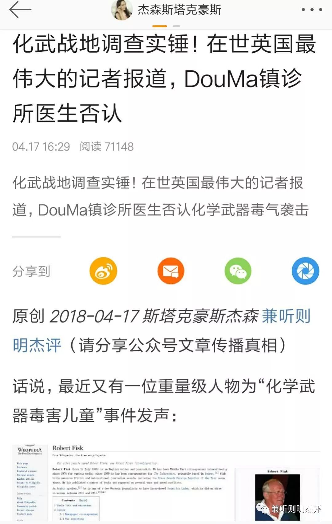 Robert Fisk是全世界第一个报道出真相的媒体记者,