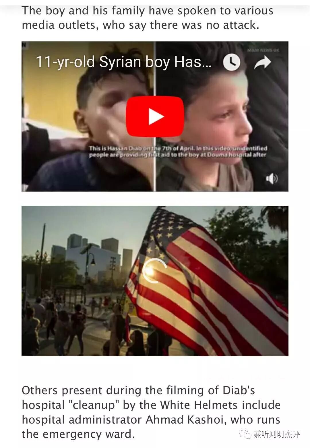 这名男孩和他的家人已经向各种媒体渠道发表了讲话,他们说叙利亚DouMa镇没有发生“化学武器毒气袭击”事件。