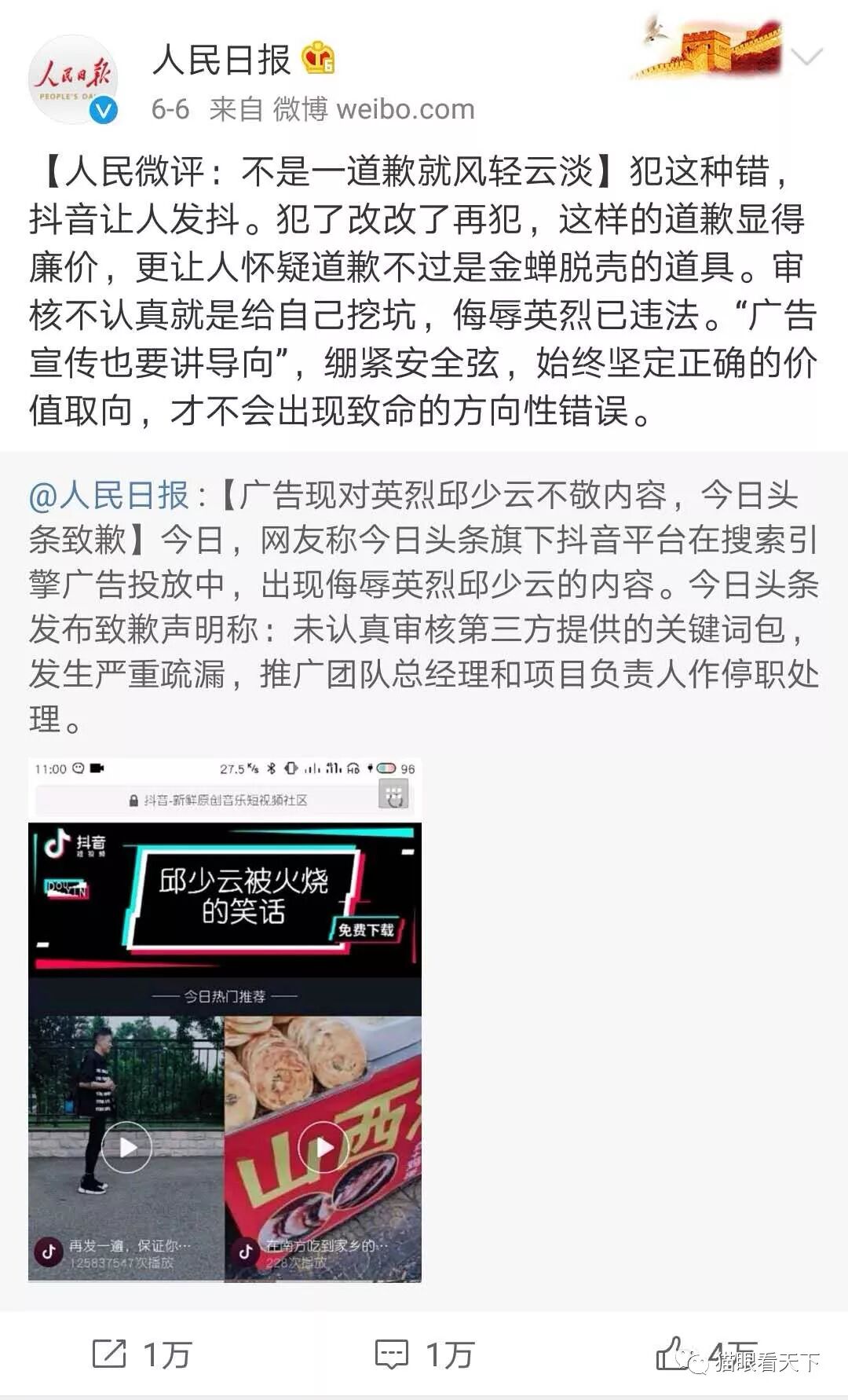 终于,抖音的疯狂已经到了无视民族基本道德感情底线、挑战法律底线的程度了。在微博上风靡走红的公知大V们曾经无耻的各种侮辱英雄的行为,居然被复制到了抖音上!
