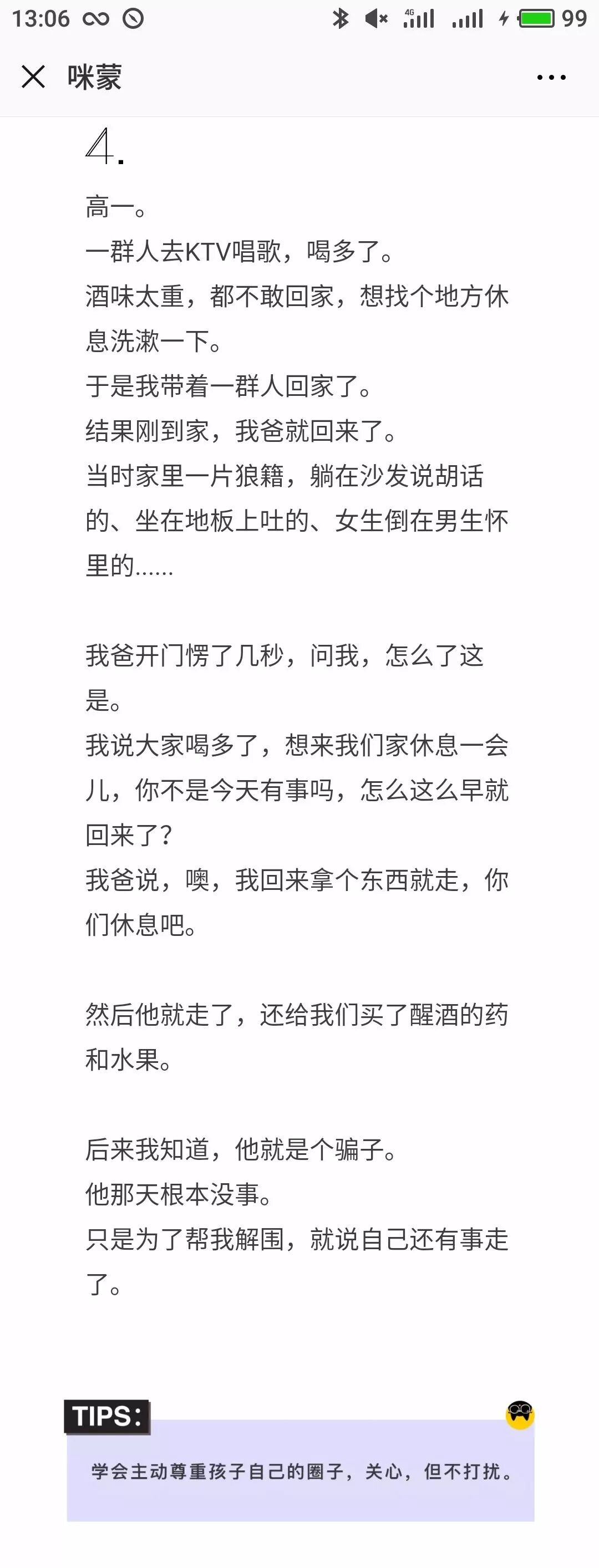嗯,这是文章的标题,一如既往地咪蒙。往下看,哦,原来是涉及子女教育的,讲的是一个她认为“成功”教育案例——她的一位同事,我们来看看这位同事的爸妈是怎么教育的:
