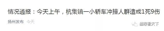 10月15日上午,扬州拆除侵占小运河河道违章建筑物时,一辆黑色轿车冲撞拆除人员和群众,致1死9伤,警方正在调查。