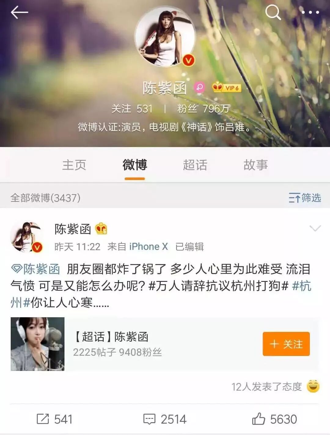 也是公开为为#万人请辞抗议杭州打狗#站台,表示“流泪气愤”!