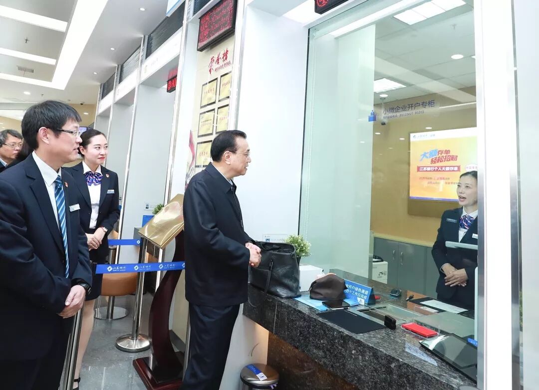李克强总理11月29日来到江苏南通,一下飞机直奔江苏银行南通崇川支行。该银行将服务小微企业视为自己的“成长基因”,千方百计增加小微企业贷款客户数,同时实现了不良贷款率大幅降低。李克强说,你们的业务实践证明,只要用恒心、下真功,破解小微企业融资难融资贵这一世界性难题就大有希望。小微企业名头听起来小,但做好了却是篇大文章:它们是支撑就业的主力军。小微活,就业才兴,市场就旺。