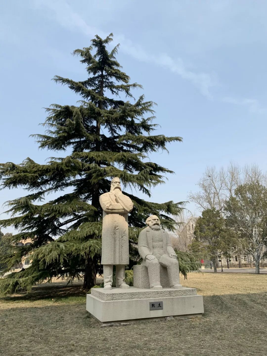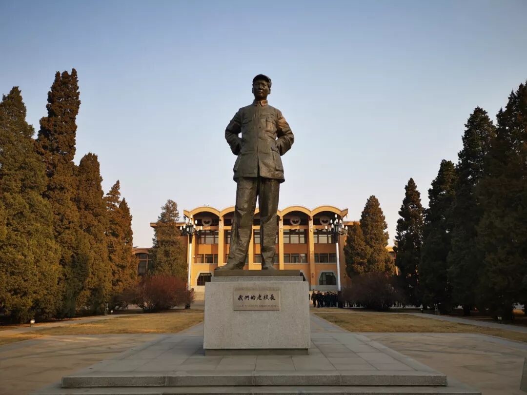△礼堂前的毛泽东雕像。毛泽东曾在1943年到1947年间担任中共中央党校校长。(央视记者张晓鹏拍摄)