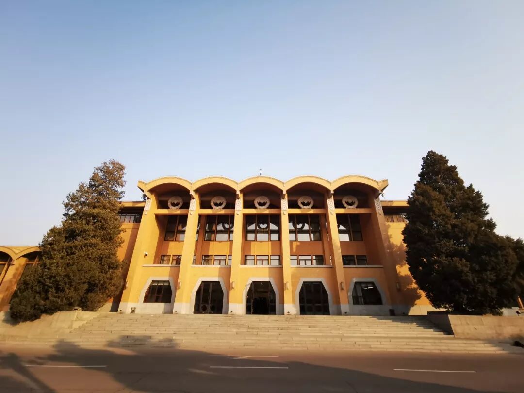 △“开学第一课”的地点——中共中央党校礼堂。建成于1959年9月。建筑外墙采用黄缸砖贴面,屋顶为拱型薄壳结构。屋檐下方镶有五个圆型空心花饰,既代表中国陕北特色的窑洞风格,又体现苏式建筑的特点。它是由建筑设计师戴念慈设计的。(央视记者张晓鹏拍摄)