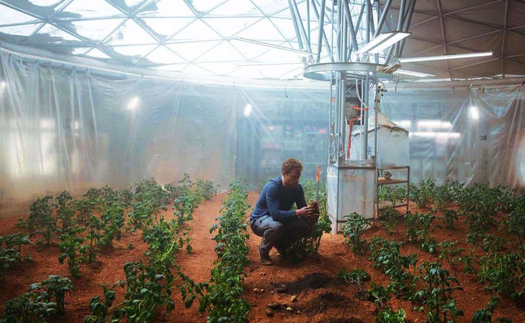 在《火星救援》里面,马特•达蒙被落在了火星上,他之所以能活下来,是因为有个生活基地,里面有空气,有一部分食物,还提供了基础的条件,让他在火星上种土豆。