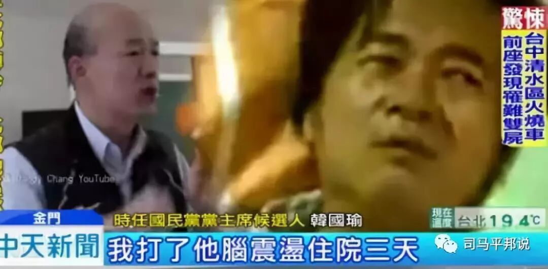 再说一点题外的话,1993年5月5日的时候,当时台湾“立法院国防委员会”搞了个审查荣民改革的相关预算。当时作为“立委”的陈水扁就说:政府养荣民不如养猪。荣民,就是那些当年从大陆到台湾的国民党军人。这时候,作为荣民之后的韩国瑜——他也是“立委”,听了陈水扁的话非常生气,走到陈水扁的跟前,把前面的桌子掀了,还打了陈水扁一巴掌,为此阿扁住院3天。