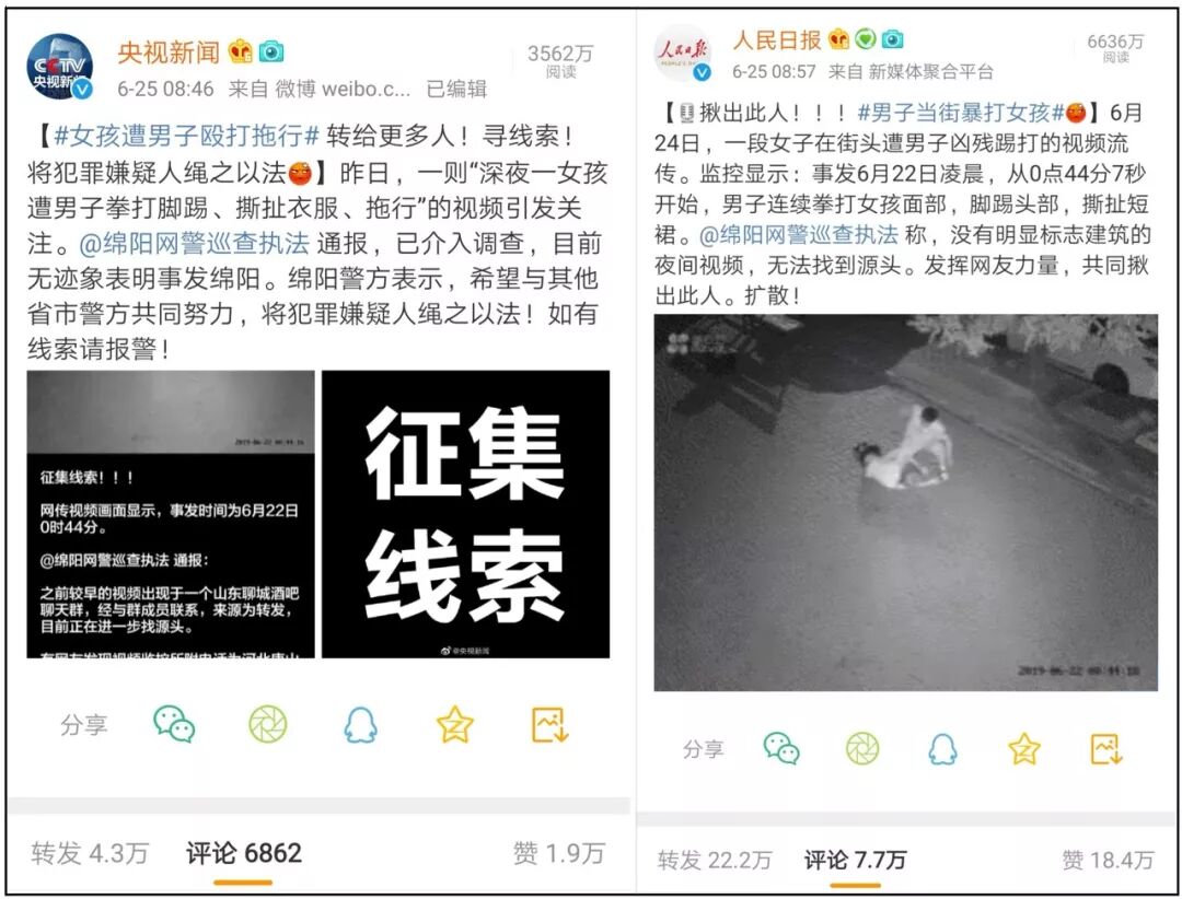 与此同时,6月25日上午,包括人民日报、央视新闻等官方主流媒体在内的多家大媒体均深度介入此话题,呼应“绵阳网警巡查执法”,征集相关线索,事件网络热度再次被推高。
