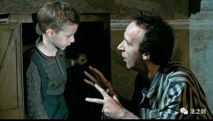 但当他被捕路过那个铁箱子时,他依然装出了一副怪诞滑稽的模样,借此让儿子相信这一切都是一个游戏,千万不要害怕,不要出来。