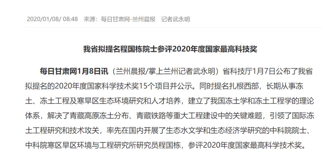 出于好奇,我在网上搜一下程国栋,发现了这样一条新闻: