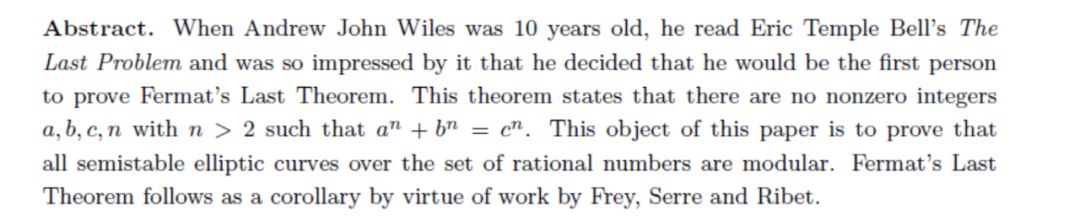 记得自己读研的时候看到Wiles证明费马猜想论文的摘要,当时就惊呆了,论文还能这么写?!