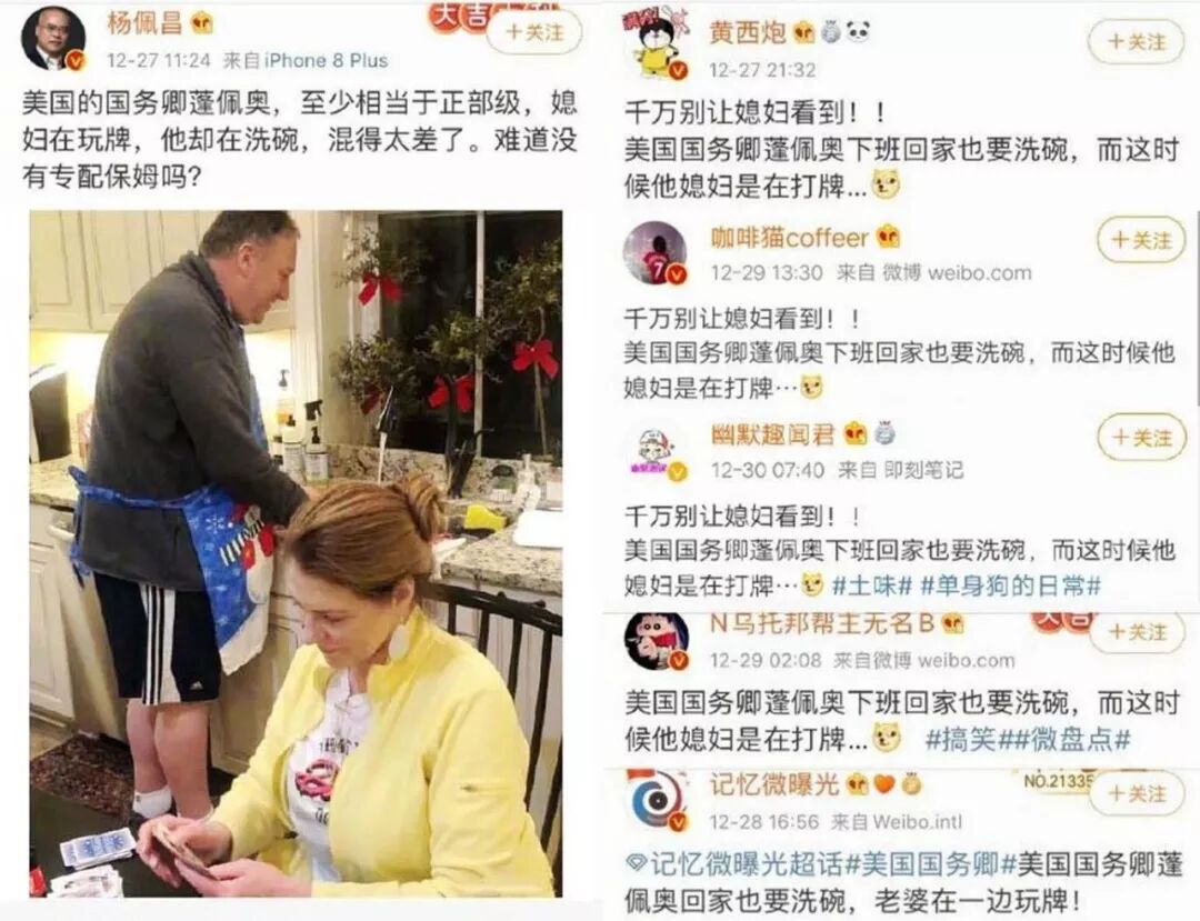 所以蓬佩奥在家洗碗要么是超级小概率的事件、要么就是刻意做做样子,没有任何的说服意义。否则美国纳税人拿钱养着一个洗碗工来决定国家大事,那脑子里不都是水吗?这可是货真价实的体制问题啊!