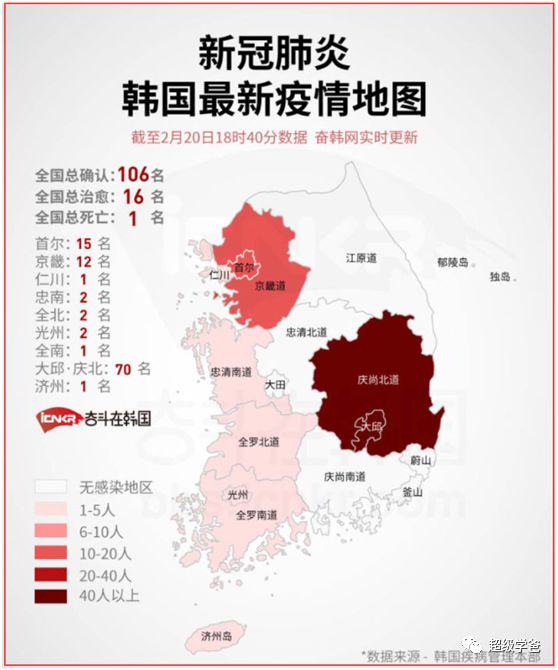 我们的近邻韩国,最近的疫情犹如火山喷发,确诊数量连日翻番,从大前天的31例,猛增到前天51例,昨天(20日)暴增到了106例,今天(21日)醒来竟然156例了。