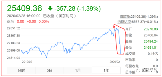 随着疫情的发展,美国的股票一跌再跌,从2月13日的29551点,跌倒了昨天的25409点,跌去了4142点。