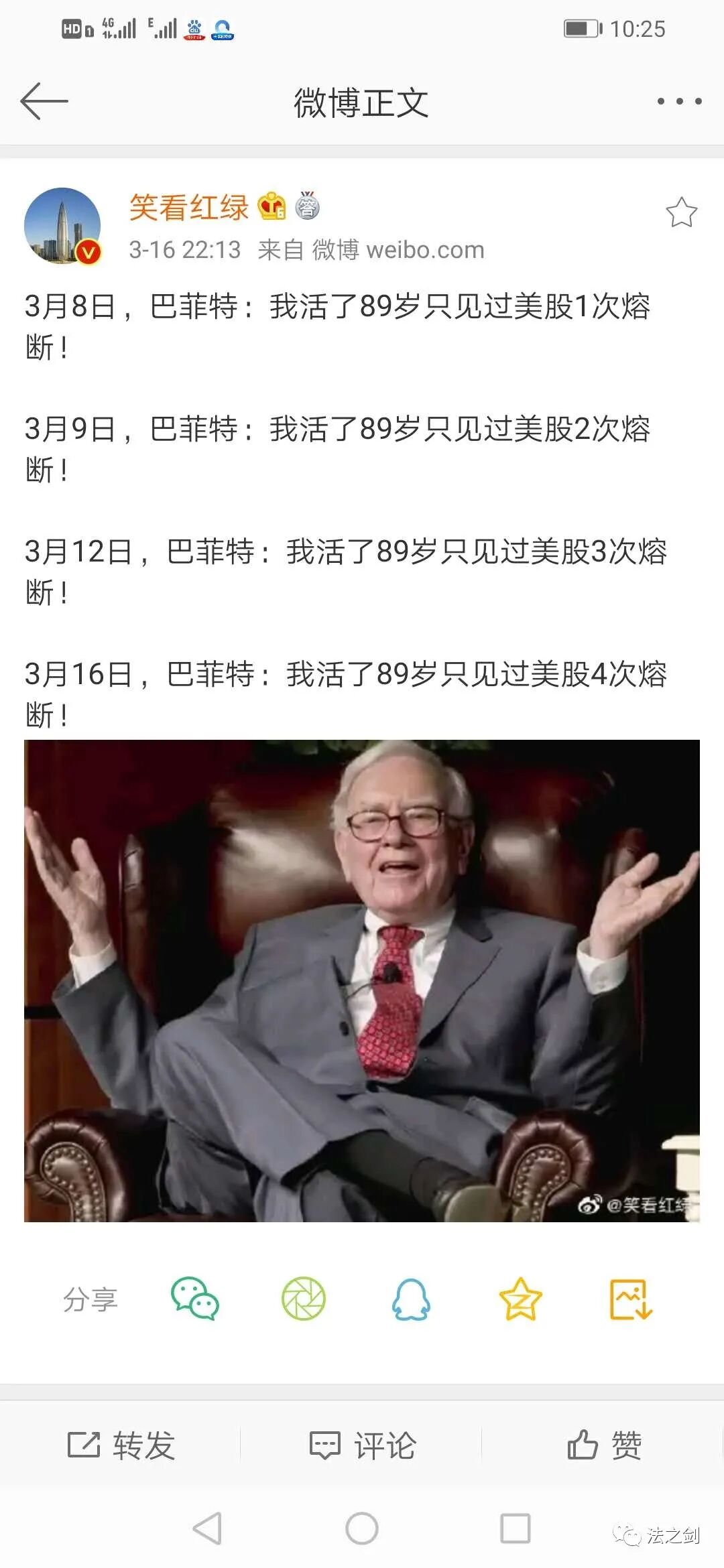 3月16日,巴菲特:我活了89岁只见过美股4次熔断!
