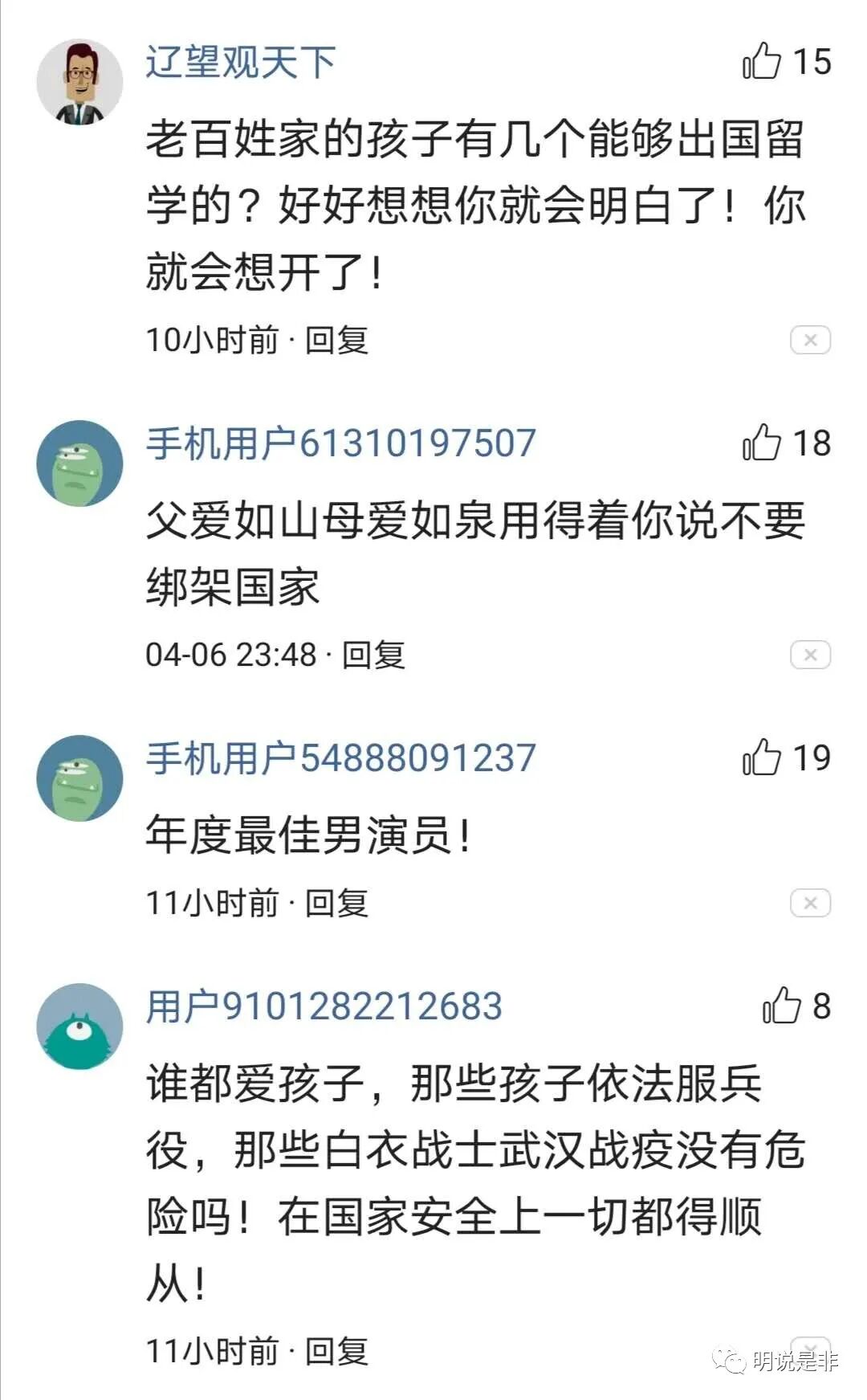 还是那句话,疫情不同于战乱,只要遵守政府规定,防护得当,就可以避免感染。那些一心只想把孩子送出到国外拿好处,却又为了躲避疫情口口声声说自己的孩子是中国人的家长们,无论是不是公众人物,都应当谨言慎行,以免因为罔顾大局而成为历史和人民的罪人。(李吉明)