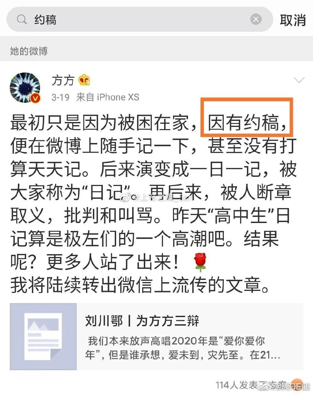 只不过方方是个把所有的事情写进日记的人。热心的网友翻看了她的微博,发现了这么一条: