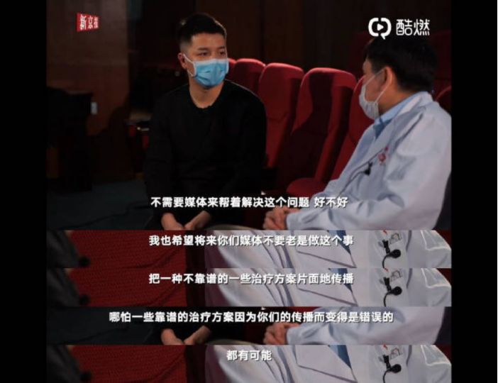 我也希望将来你们媒体不要老是做这个事,把一种不靠谱的治疗方法片面传播,哪怕一些靠谱的方法也因为你们的传播而变得错误。”